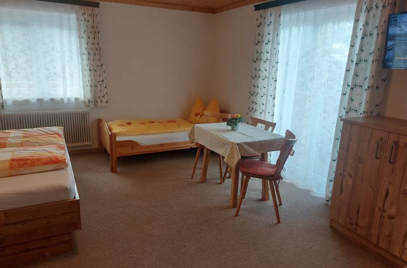 Unser gemütlichesFerienzimmer bietet Ihnen die Wahl: Buchen Sie es entweder als komfortable Ferienwohnung oder als Ferienzimmer mit Frühstück. Das großzügige Zimmer kann als Dreibettzimmer oder als Doppelzimmer genutzt werden. Es ist ausgestattet mit einem großen Doppelbett und einem zusätzlichen Einzelbett, ideal für Familien oder Gruppen. Genießen Sie die private Dusche und das WC, sowie den praktischen Wachtisch. Der Flachbild-TV und kostenloses WLAN sorgen für Unterhaltung und Verbindung. Der Balkon bietet einen traumhaftenAusblick auf die alpine Landschaft. Zusätzlich steht Ihnen eine kleine Teeküche im Flur zur Verfügung, ausgestattet mit einem Kühlschrank, perfekt für Ihre Snacks und Getränke. Entscheiden Sie sich für die Zimmer-mit-Frühstück-Option, erwartet Sie ein leckeres Frühstück im gemütlichen Frühstücksraum, um Ihren Tag perfekt zu starten. Unser Viehhofbauer liegt zentral in Maria Alm und ist der ideale Ausgangspunkt für Ihre Abenteuer im Hochkönig-Gebiet. Ob Wandern, Skifahren oder einfach nur entspannen – bei uns finden Sie den perfekten Ort für Ihren Urlaub. Buchen Sie jetzt Ihr Ferienzimmer im Viehhofbauer und erleben Sie einen erholsamen Aufenthalt in den wunderschönen Alpen!